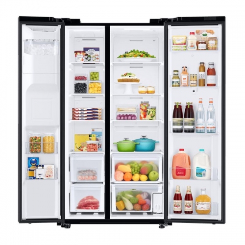 Pantalla exterior HUB LCD / Luz LED interna / Estantes de cristal templado / Fabricador de hielo interno automático / Alarma de puerta / Dispensador de agua y hielo / SpaceMax Technology / Cámaras para escanear el interior de la nevera.