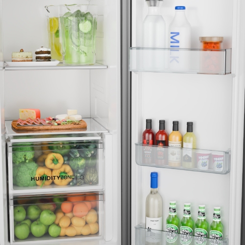 Heladera Side by Side de gran capacidad (610 L) con tecnología Inverter que optimiza el consumo energético y mantiene una temperatura estable. Cuenta con panel Touch para un control práctico y preciso, diseño moderno en acero inoxidable y distribución interna eficiente para una mejor organización de alimentos. Ideal para familias que buscan rendimiento, espacio y estilo en su cocina.